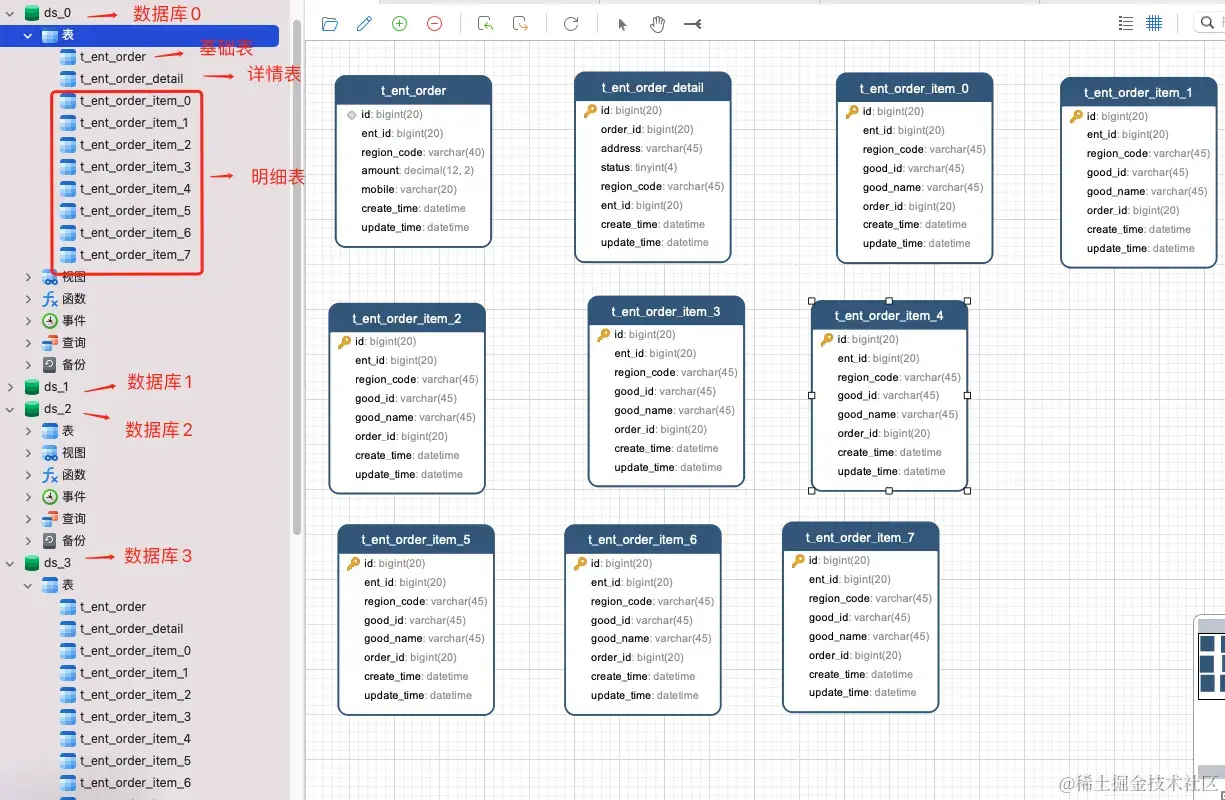 它们在数据库中的真实形态是:t_ent_order_item_0 到 t_ent_order_item_7。