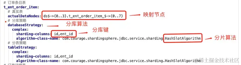 订单明细表的真实节点是:ds$->{0..3}.t_ent_order_item_$->{0..7} 。