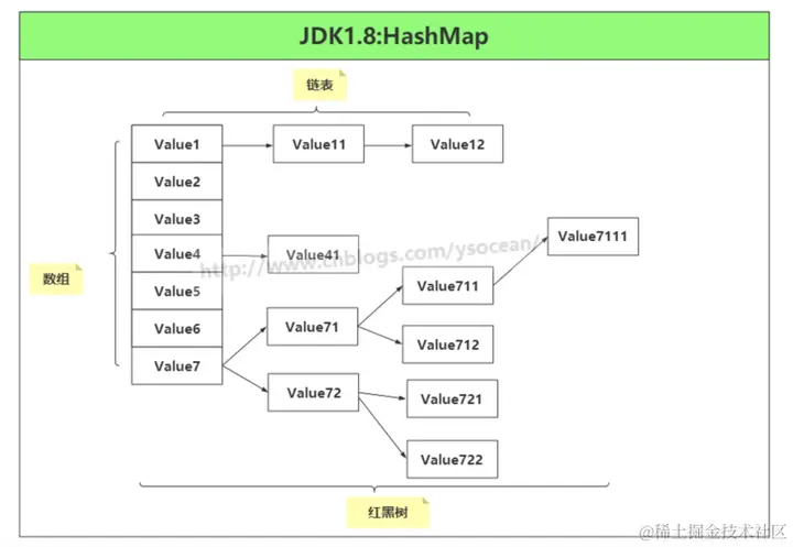 如果多个键有相同的哈希码或不同的哈希码映射到同一位置,HashMap 会使用红黑树结构来处理这种冲突。