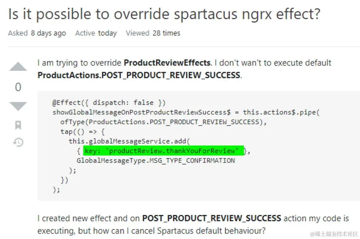 - ProductActions.PostProductReview 是 NgRx Action 的一个子类,type 字段为 POST_PRODUCT_REVIEW,构造函数的参数 payload,定义了调用 Commerce OCC API 持久化用户评论需要传递的数据结构: