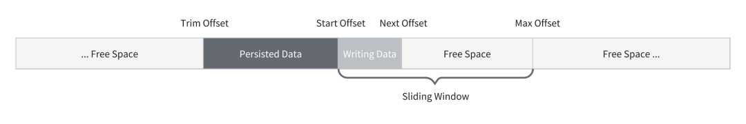 Max Offset: 滑动窗口的最大逻辑位点。当 Next Offset 到达 Max Offset 时,会尝试扩大滑动窗口。当窗口达到最大长度时(之前在 WALHeader 中提到的 slidingWindowMaxLength),会暂停写入,直到有 record 落盘,窗口向前滑动。