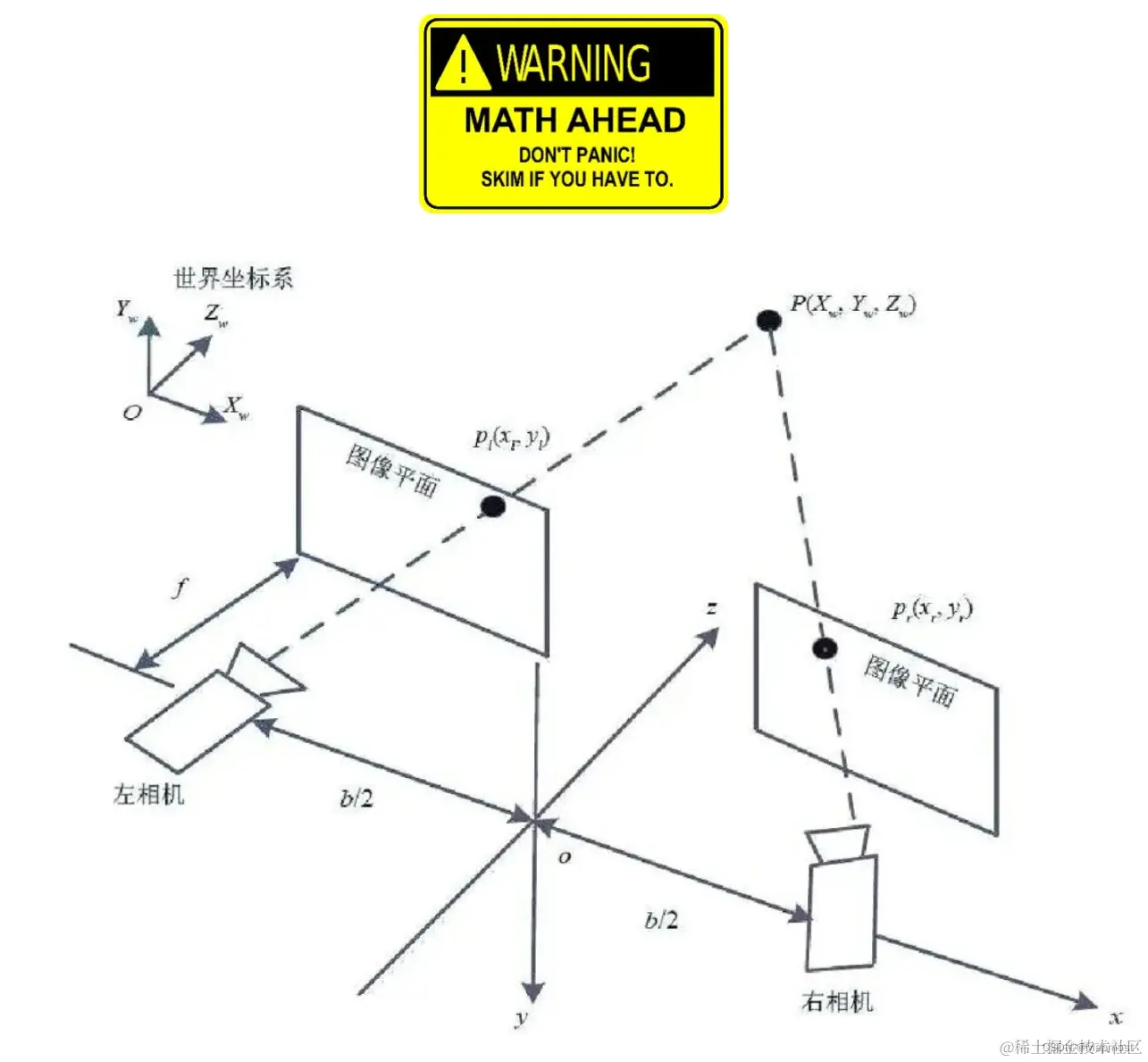 更进一步的,关于双目立体视觉的深层原理,大家可以看下图,以便了解。由于涉及到更多的数学知识,本文不在此展开。