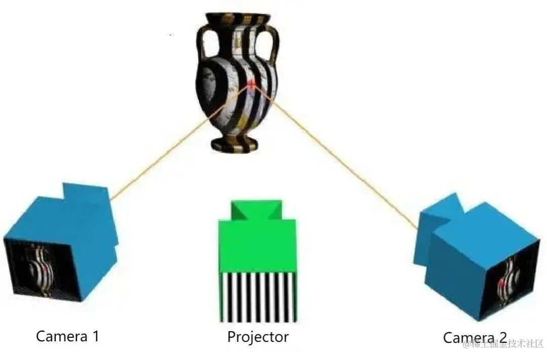 激光三角测量,可精确捕获3D形状(数百万个点)。更精确地说,它们的工作原理是将激光点或激光线投射到物体上,然后用传感器捕获其反射。由于传感器的位置与激光源的距离已知,因此可以通过计算激光的反射角来进行精确的点测量。有了扫描仪到物体的距离的知识,扫描硬件就可以绘制物体的表面,从而记录3D扫描。