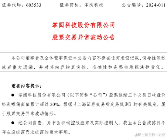 无独有偶,掌阅科技亦发布异动公告称:公司有在将市场已有的AI大模型和阅读APP进行融合,但相关功能应用主要聚焦于公司现有主营业务,包括阅读前的推荐、阅读中的互动、阅读后的知识图谱等,相关产品尚在小范围用户测试阶段,何时推向市场存在不确定性,预计对公司目前业务及经营情况不存在重大影响。