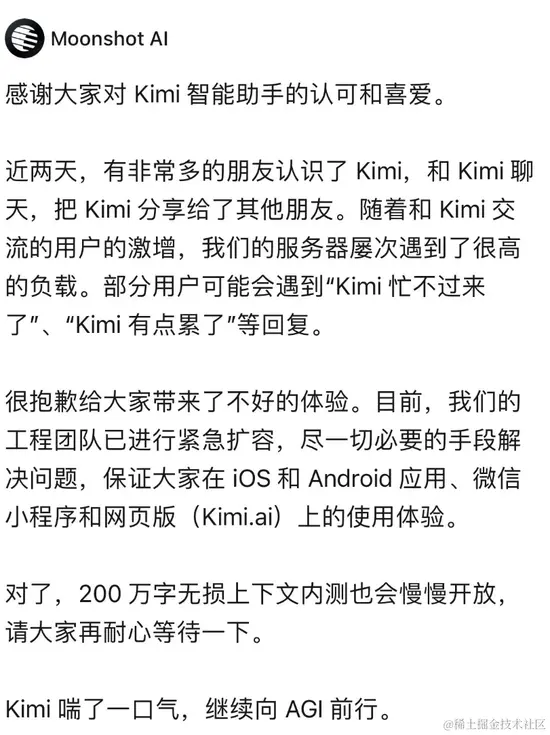 与资本市场的火热相对应,月之暗面当晚突发情况说明称: