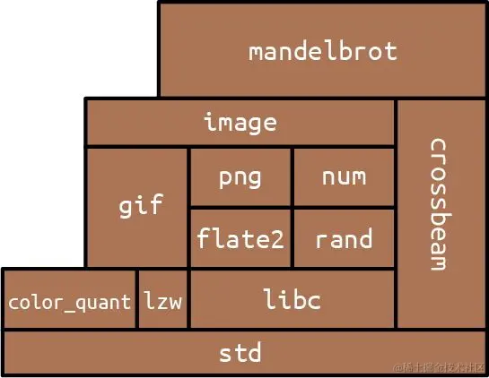 弄清楚 crate 是什么以及它们如何协同工作的最简单途径是,使用带有 --verbose 标志的 cargo build 来构建具有某些依赖项的现有项目。我们以 2.6.6 节的“并发曼德博程序”为例来执行此操作。结果如下所示: