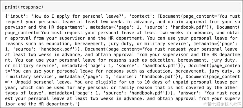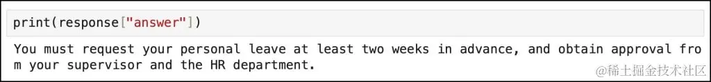 如我们所见,答案键中有来自链的预期响应。让我们将其打印出来。