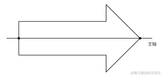 我在绘制图形箭头时采用先绘制一半再绘制另一半的方式。我们绘制一条经过startPoint 和 endPoint的直线,箭头就被分为了两半。这条直线被我称为 主轴 ,它也是箭头的对称轴,因此我们只要能将一半的箭头画出来,那么画出完整的箭头也就很简单了。