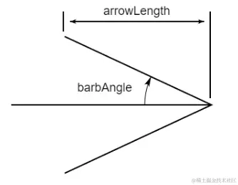 - barbAngle - 从箭杆线到箭头一侧边线的角度 - 默认值为 20°