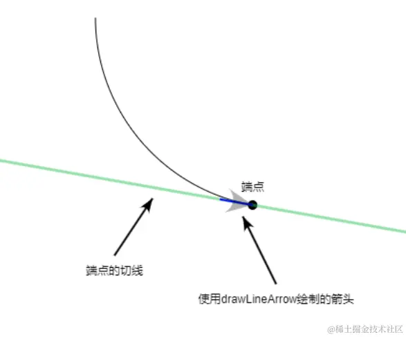 绘制弧线箭头其实也很简单,大致思路是先绘制弧线,然后再弧线需要添加箭头的端点上,在端点的切线方向上使用drawLineArrow