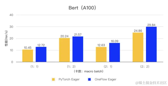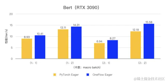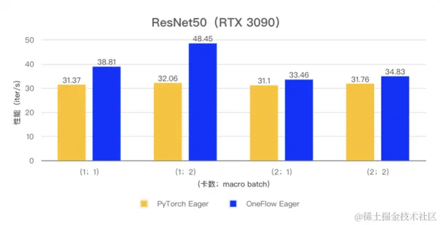 在 ResNet50 和 Bert 模型的小 batch 场景下,OneFlow Eager 相对于 PyTorch Eager 有明显性能优势。