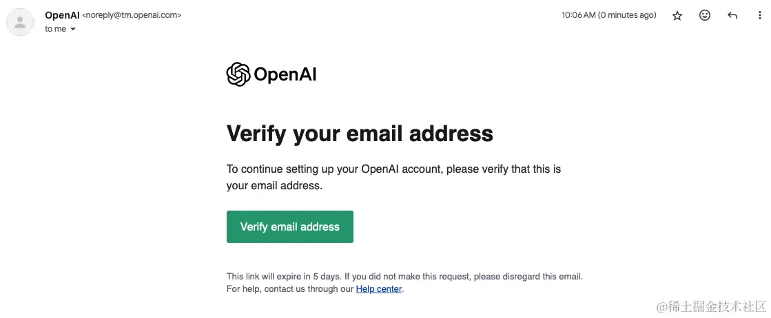 - 创建账号密码后,ChatGPT会给注册邮箱发送一封验证邮件,我们需要登录注册使用的邮箱,收取邮件并点击右键正文中的