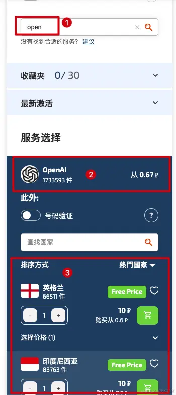 openAI,在下方选择一个chatGpt开放的国家的手机号购买。
