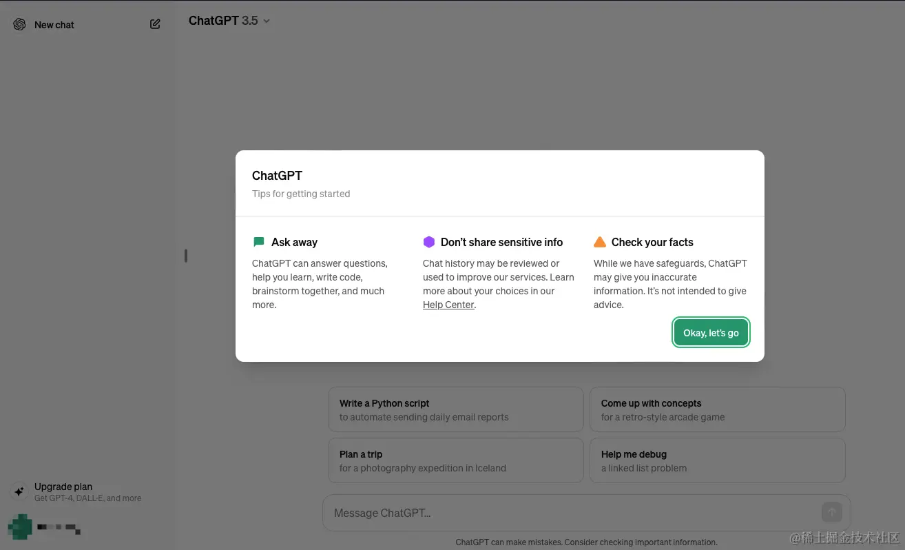 - 进入下图界面代表ChatGPT已经成功注册。