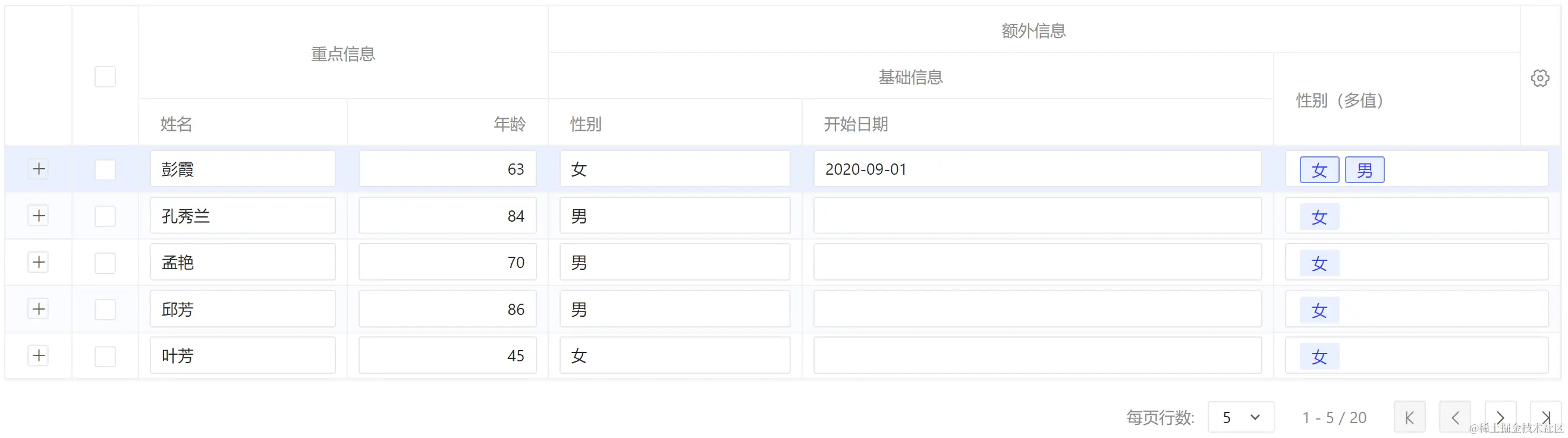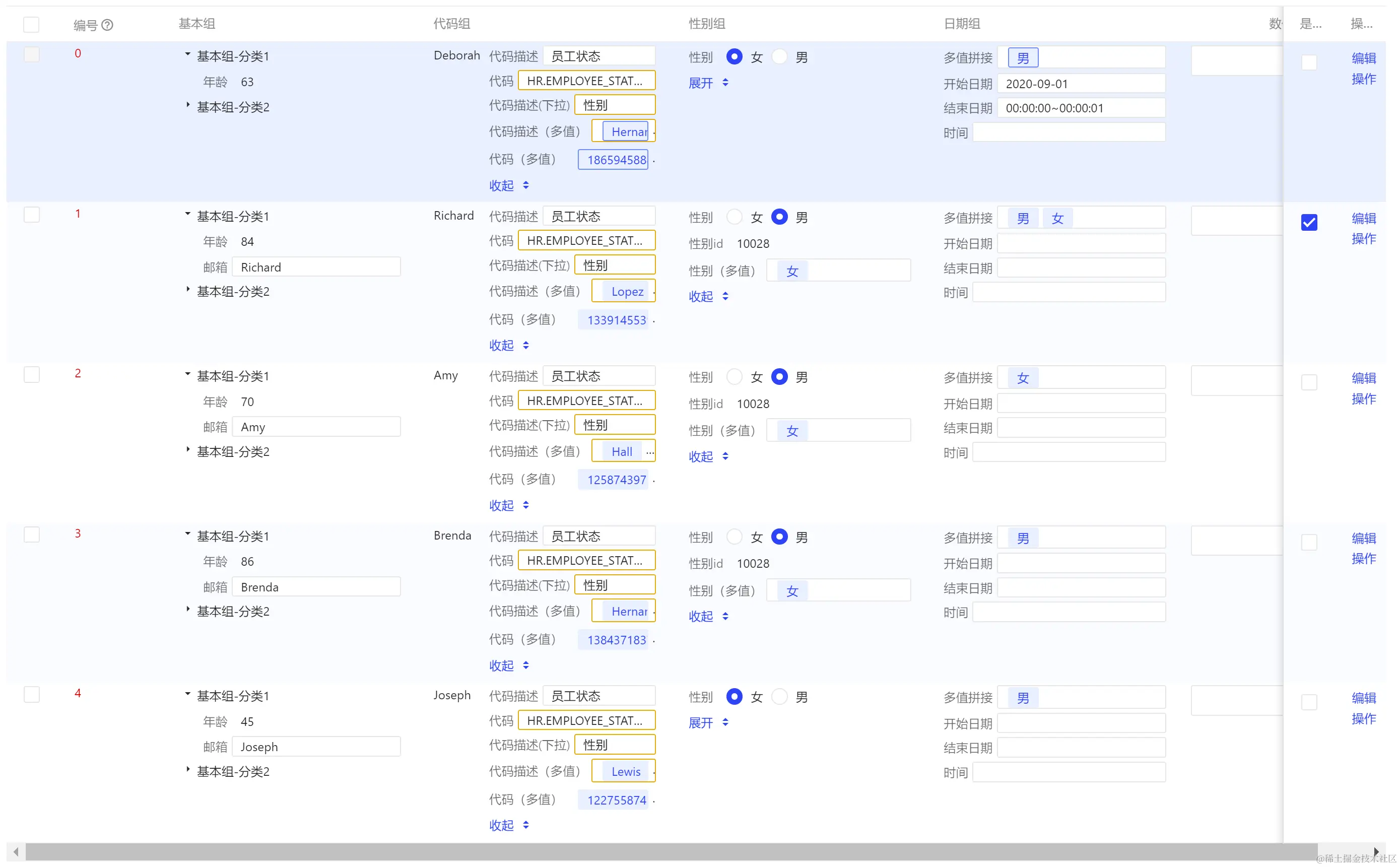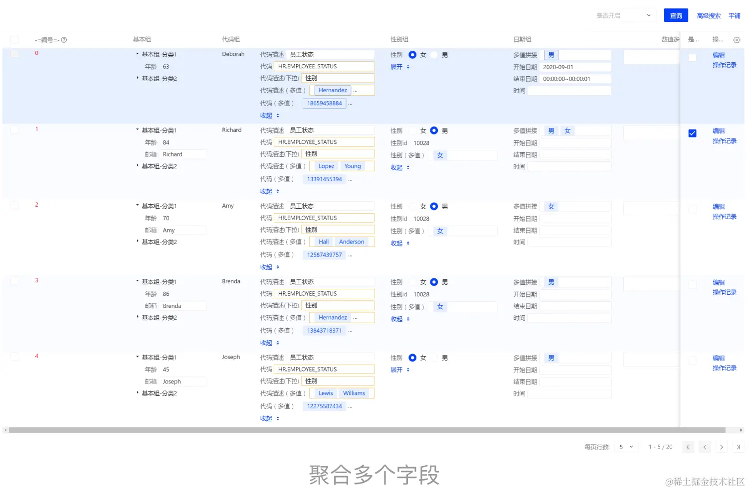 - 视图对每个分类的字段进行聚合,将多个字段最终呈现到一个大单元格内,并支持独立控制收起展开,结合列头可清晰展示信息。