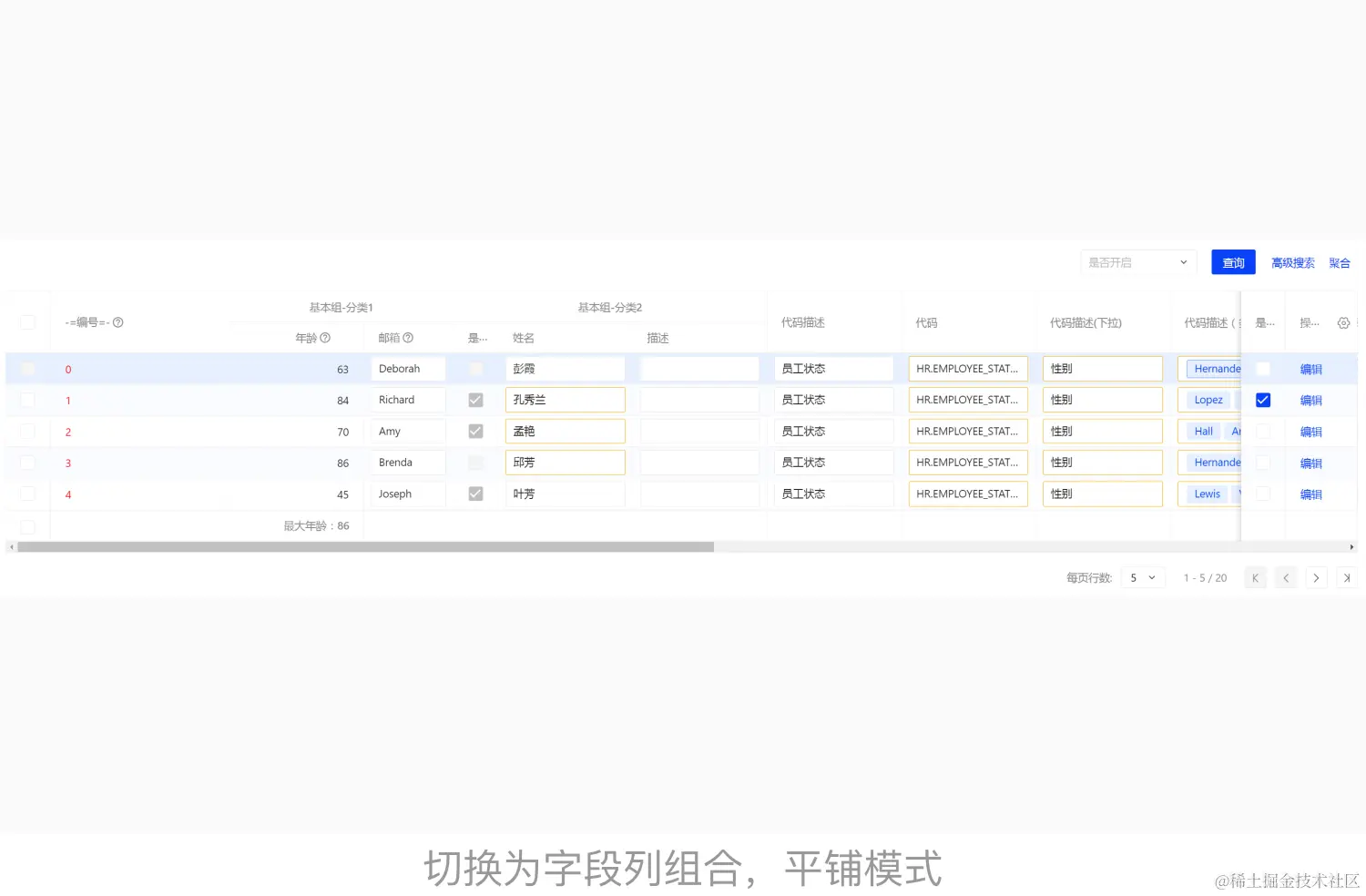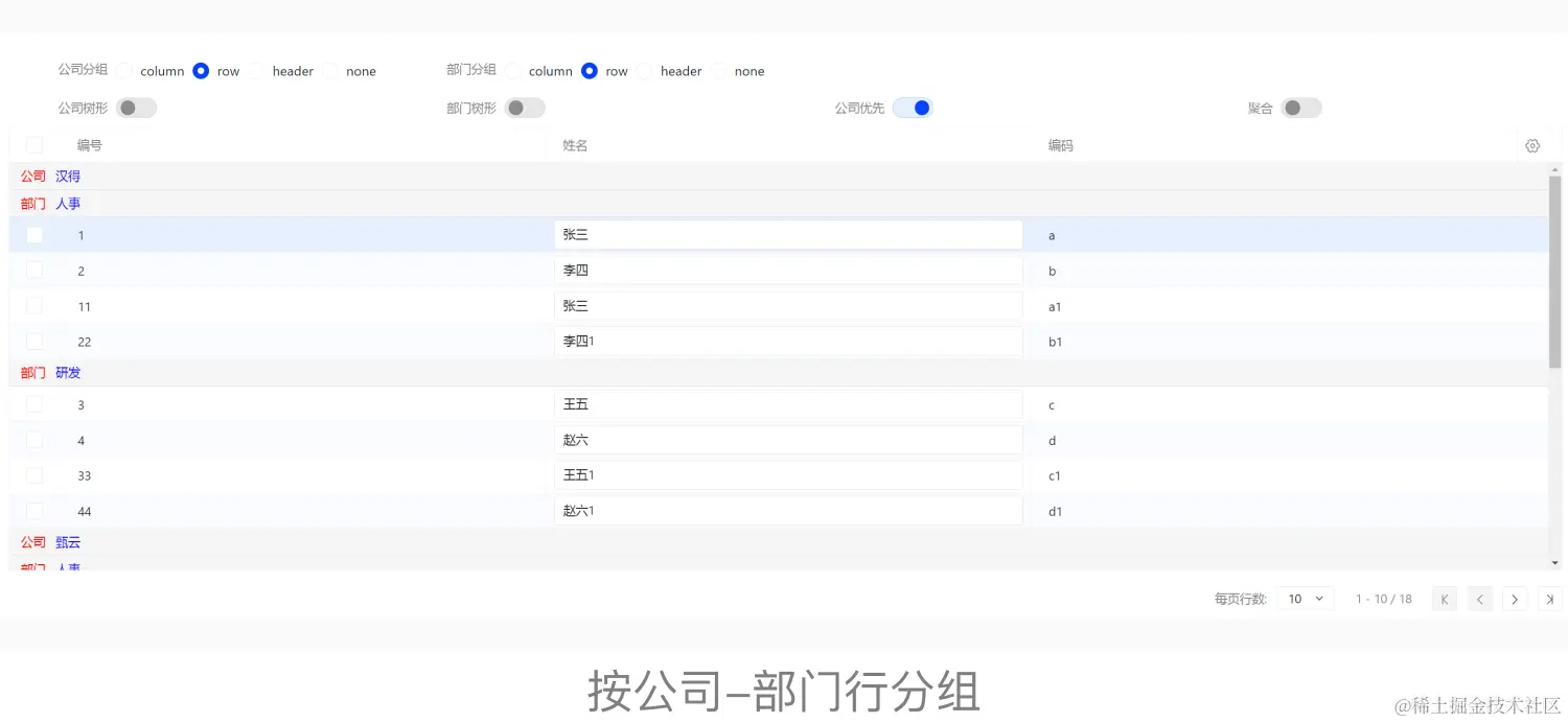 - 可配置切换按钮,让表格在平铺展示和聚合视图两种模式切换,满足不同的使用人群。