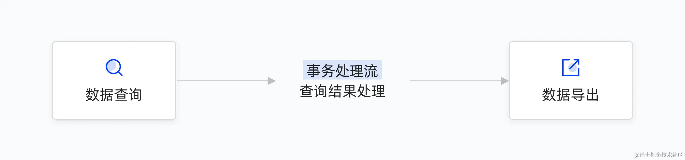 飞搭导出模板的导出逻辑是先进行数据查询,之后将查询结果进行导出,在数据查询之后,支持调用事务处理流将查询结果进行处理之后再进行后续的导出。