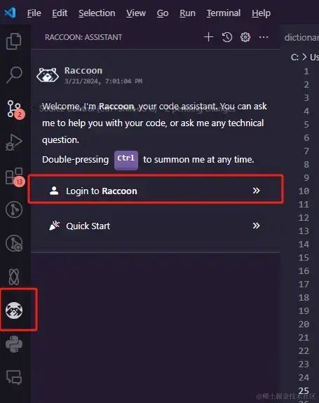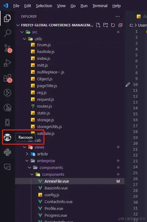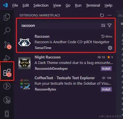 4.如果你是vscode,在扩展插件中搜索:raccoon,然后install