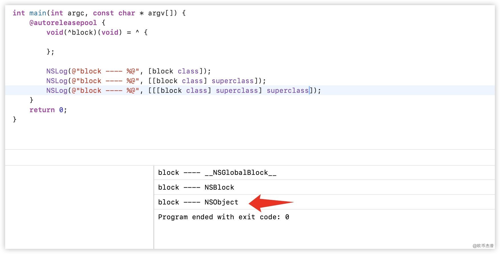 1.1 它们最终都是继承自NSBlock,NSBlock则是继承自NSObject