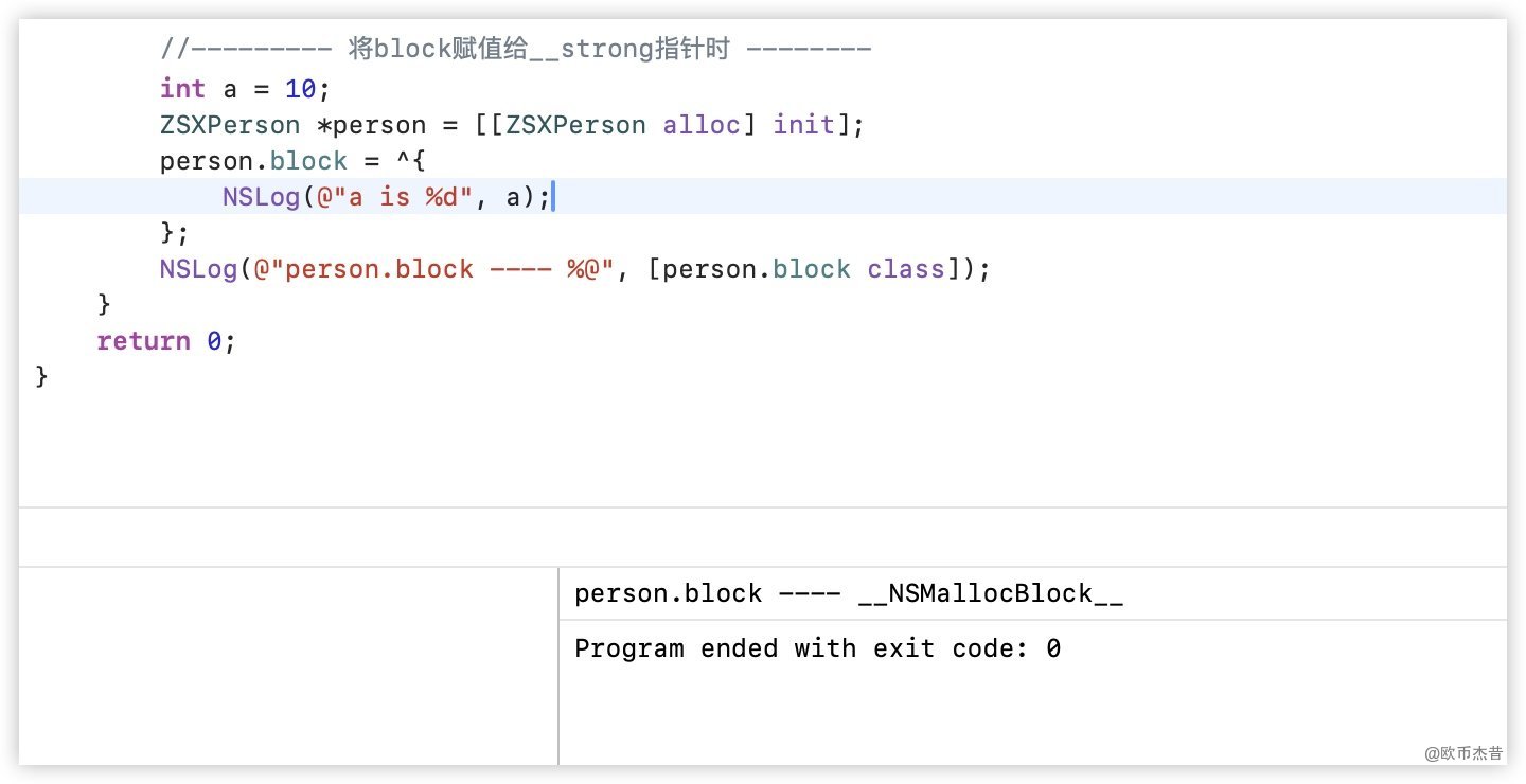 ZSXPerson实例对象person,并把block赋值给person.block