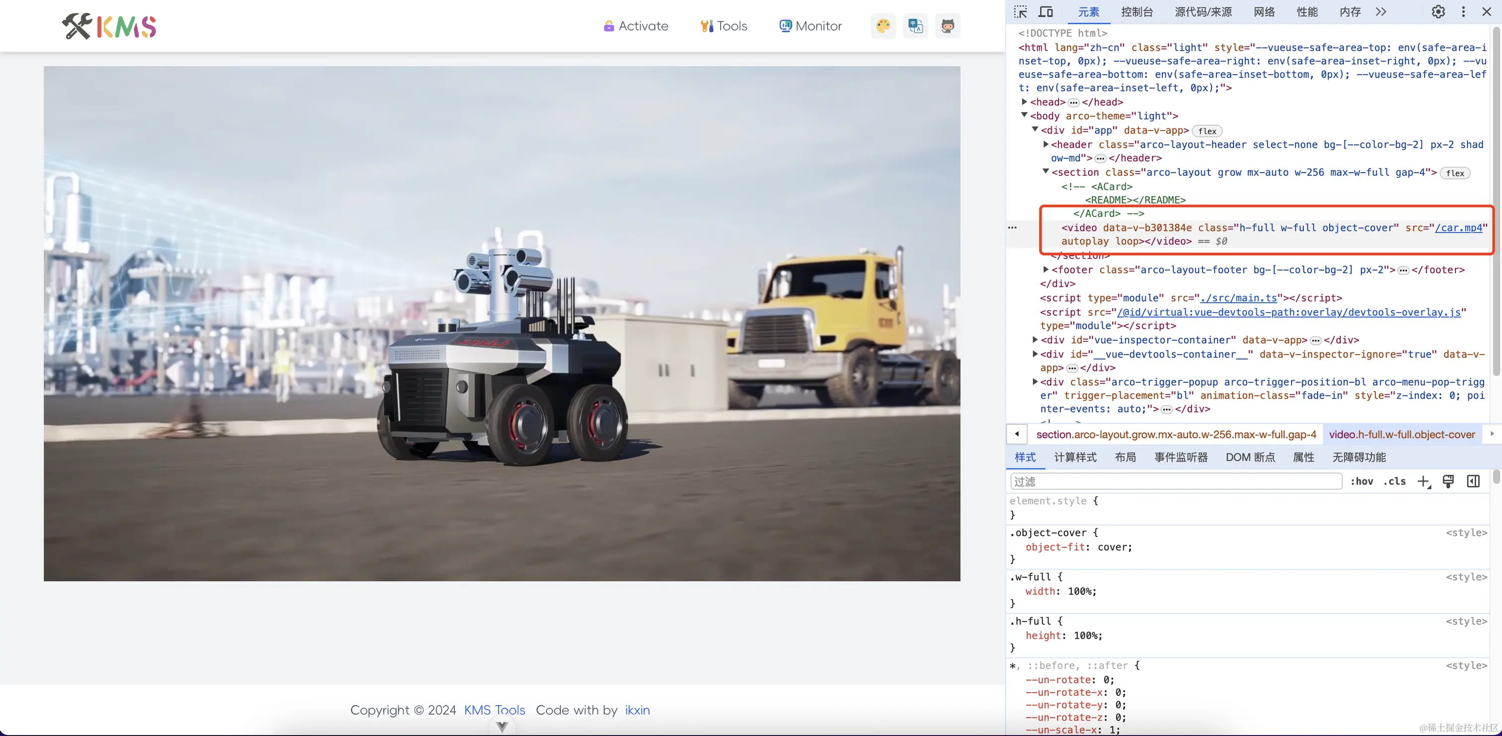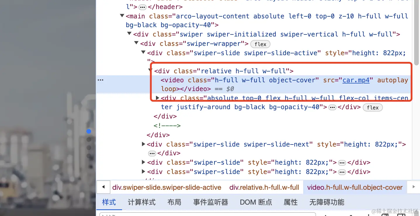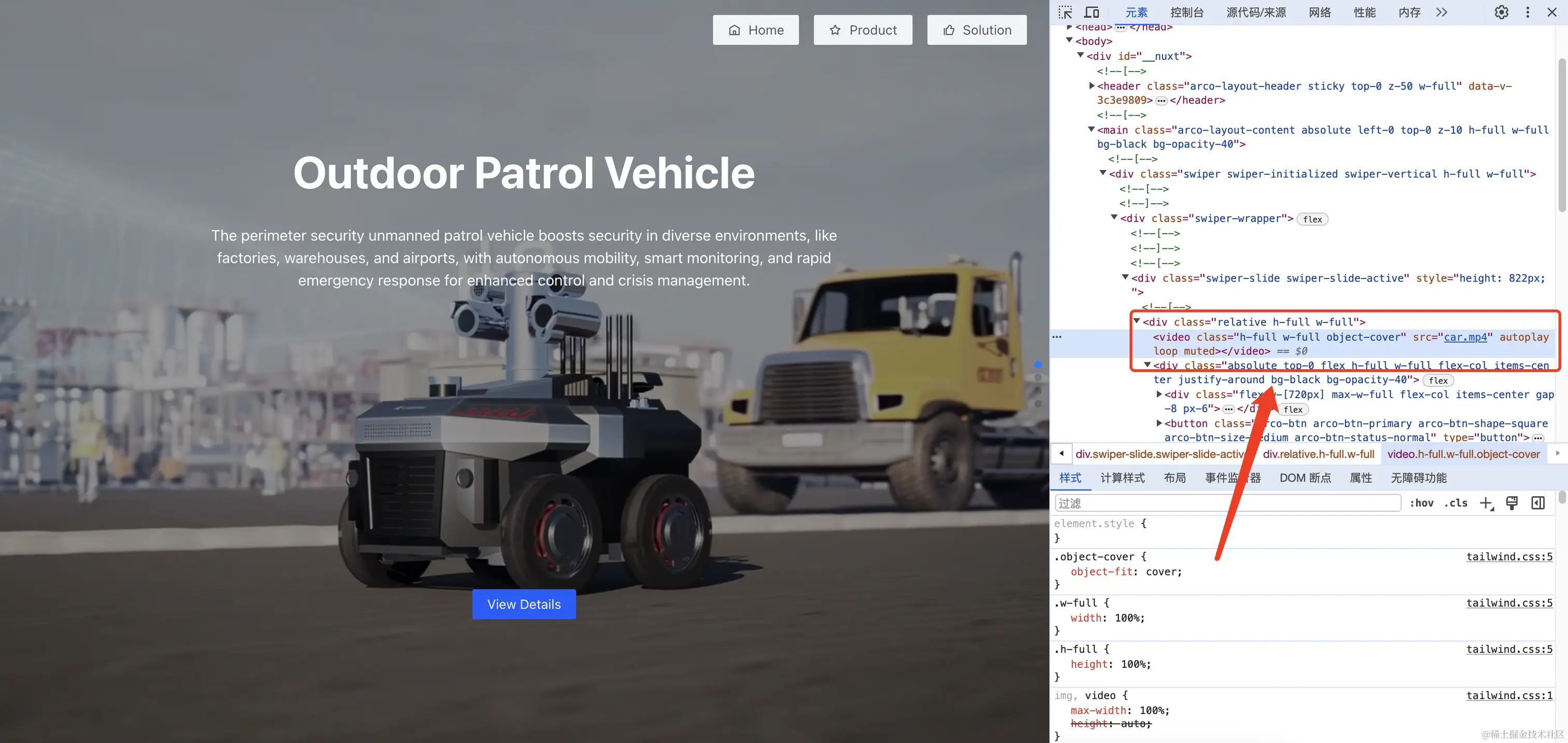 这时候切换一下路由到产品页面,再切回首页时就出现了问题,原来 video 元素中的 muted 莫名其妙的消失了,导致视频自动播放也随之失效。