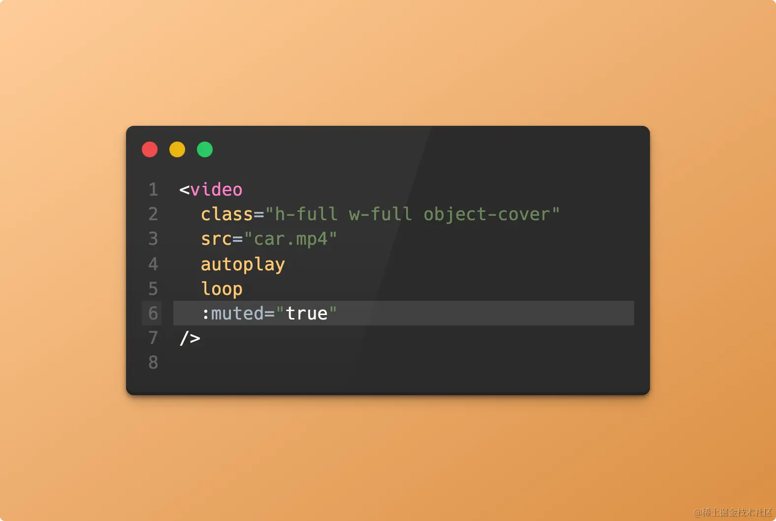 在产品展示的官网首页有一个全屏的 video 元素,视频默认自动播放,在大多数现代化浏览器的最新版本中,要实现这个功能,需要在 video 元素中加入 autoplay 属性,且还需要设置一个 muted 属性用于默认静音播放。