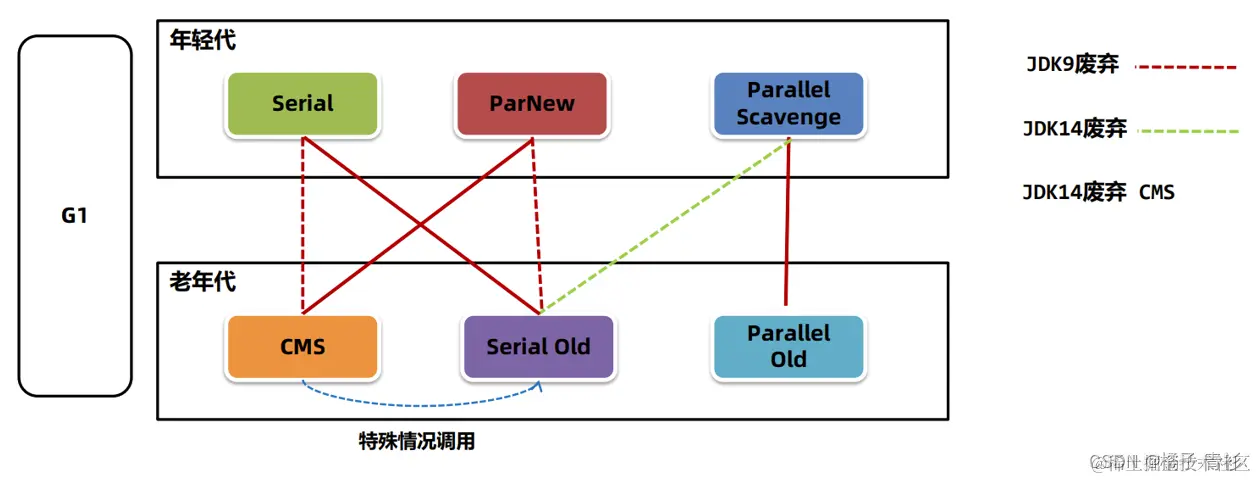 适用场景: SerialOld垃圾回收器通常与Serial垃圾回收器成对使用,以提供完整的年轻代和老年代管理方案。通过使用**-XX:+UseSerialGC**参数,可以确保新生代和老年代都使用串行回收器进行垃圾回收。在某些特殊情况下,如在CMS垃圾回收器的特殊情况下,也可能需要使用SerialOld来确保老年代内存的有效管理。