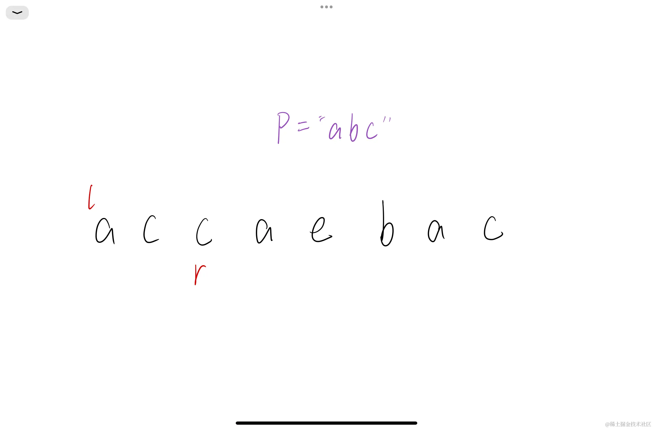 ①刚刚进窗口的字母在 p 中是否存在,如果不存在的话直接清空窗口,并且跳转到这个字母(不存在的这个字母)的下一个字母。