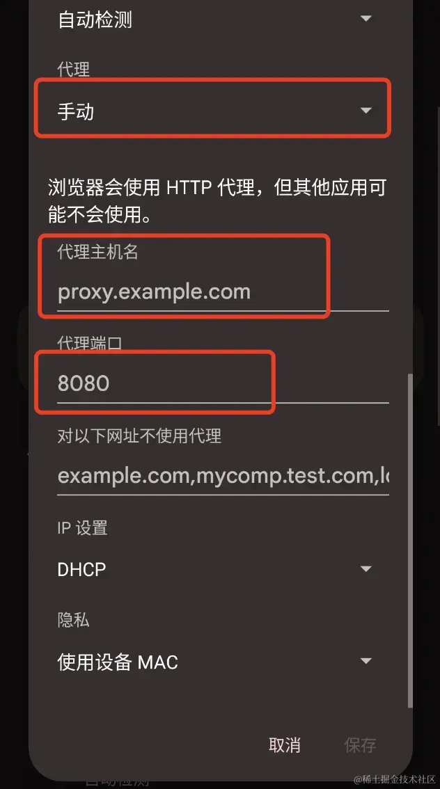 - 手机与macos电脑连上同个wifi,手机打开wifi高级设置,代理改为“手动”,代理主机名为:macos电脑内网ip,代理端口为:8888(与1中设置的端口一致)。