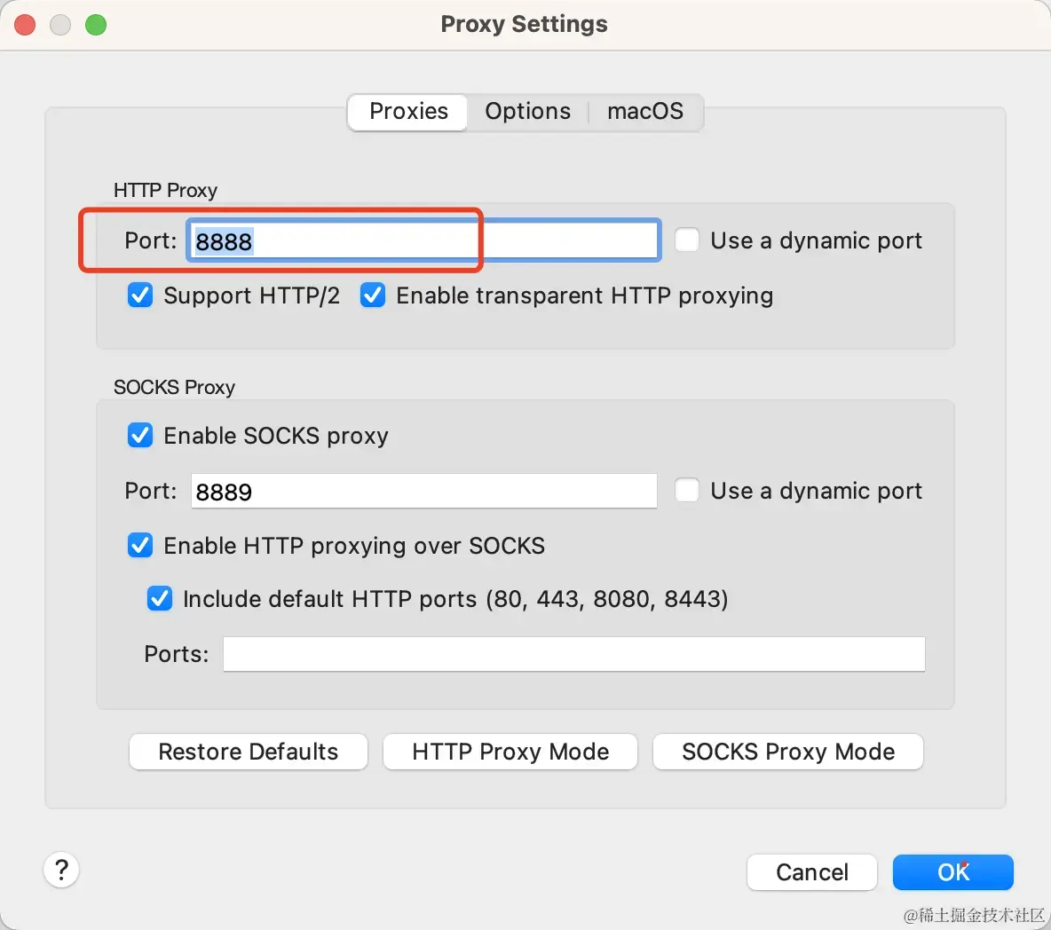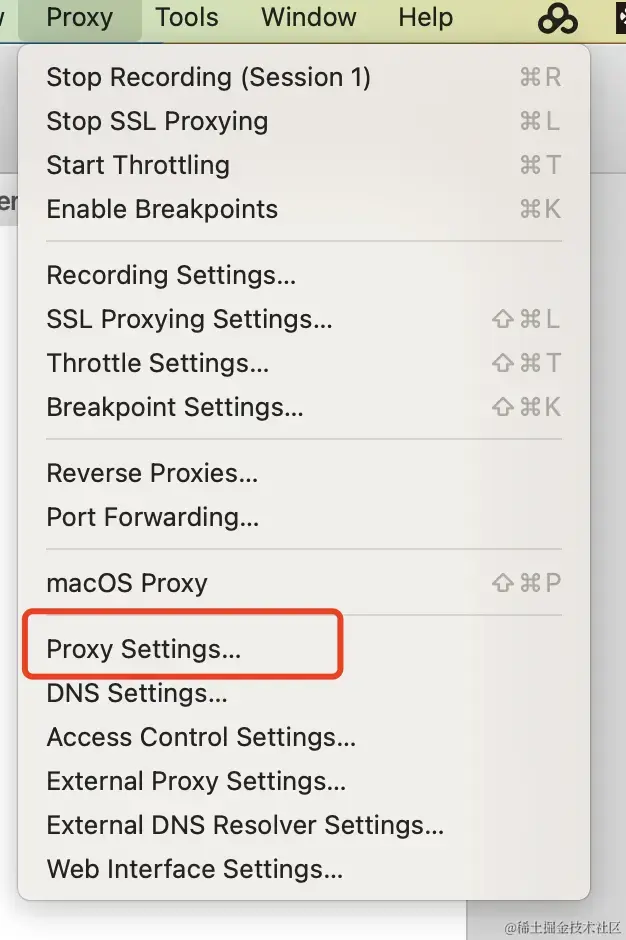 - macos上打开charles软件,Proxy-> Proxy Settings,进入设置代理端口,默认设置8888,如下图。