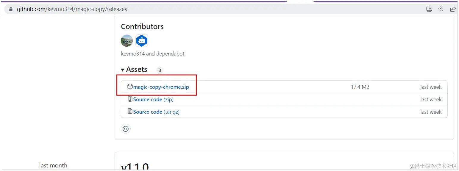 从Github上releases下载最新的 magic-copy.zip:github.com/kevmo314/ma…。