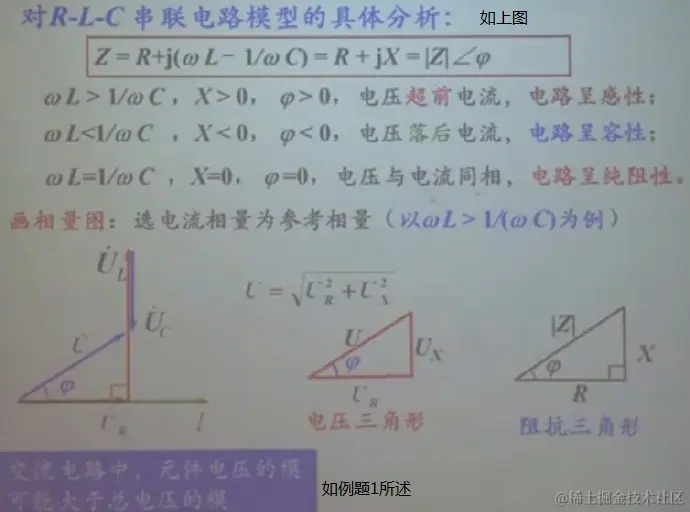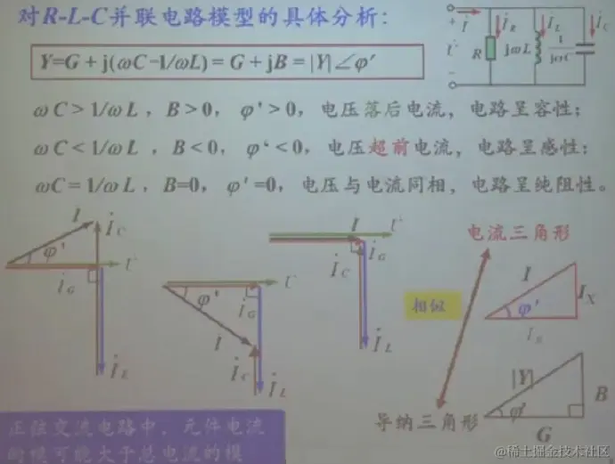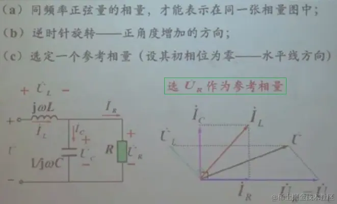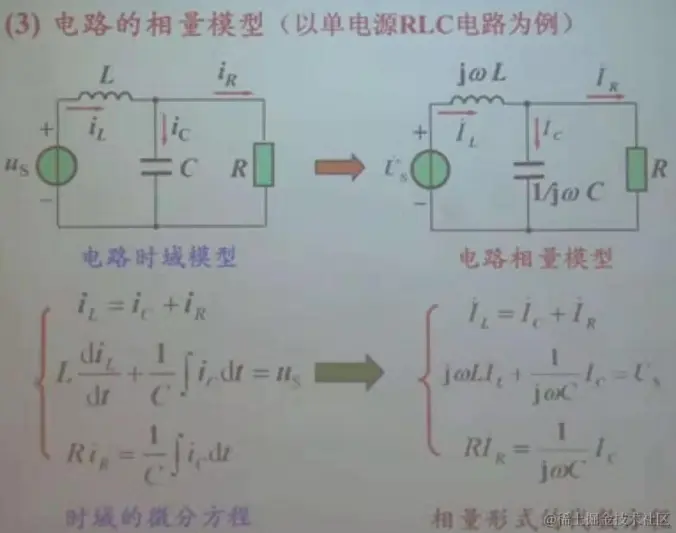 相量IL=相量IC+IR Ldi/dt=1/C∫idt+IR,即jωL=1/jωC+IR(jω用相量替换掉瞬时值)