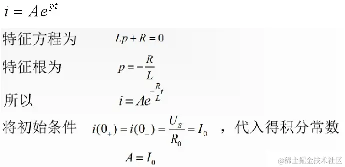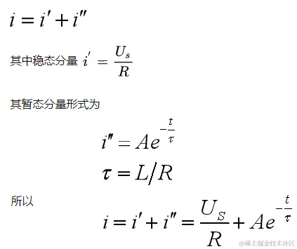 和RC电路类似,这仍是一个一阶常系数线性非齐次常微分方程,解仍由两部分组成