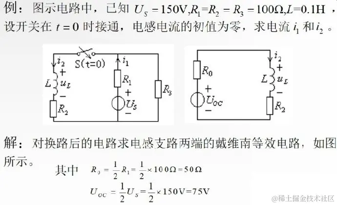 在图示电流、电压的参考方向下,由KVL得换路后的电路方程:
