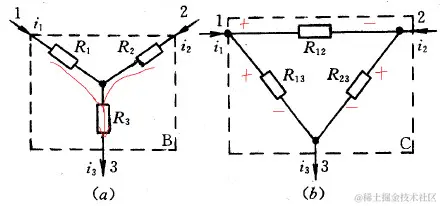 将式代入式,得:U13=(R1+R3)i1+R3i2,U23=R3i1+(R2+R3)i2。