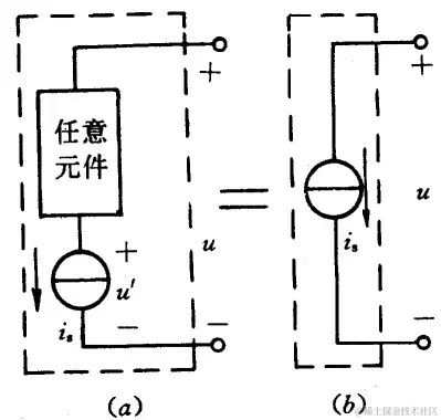 2)任意电路元件(包含理想电压源)与理想电流源Is串联