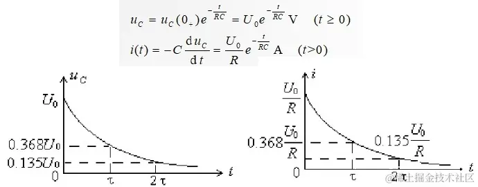 当t->∞时,Uc->0、i->0。