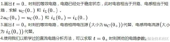 在换路瞬间,当电容元件的电流为有限值时,电容电压一般不能跃变;当电感元件的电压为有限值时,电感电流一般不能跃变。