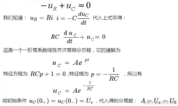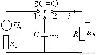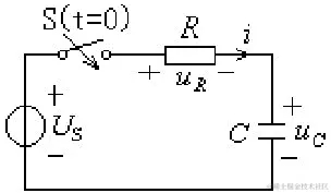 直流电压源 Us通过电阻R对电容C充电,电路如图所示。在图示电流、电压的参考方向下,由KVL得换路后的电路方程: