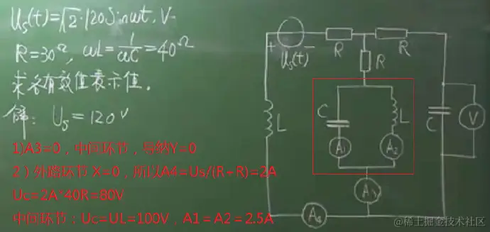 注:如果ωL=80R,那么UC=2A*80R=160V,此时元件上的电压大于电源的电压(交流电路)。