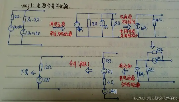 因为与电源的定义矛盾,电压源不能短路,电流源不能开路;不同电压的电压源不能并联,不同电流的电流源不能串联;参数相同则合并成一个电源。