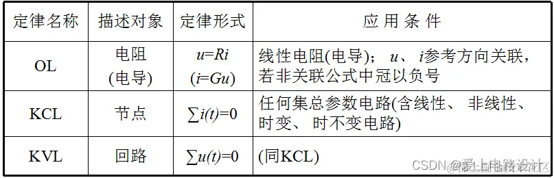 2)基尔霍夫电压定律:沿着闭合回路所有元件两端的电势差(电压)的代数和等于零。