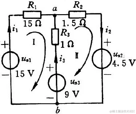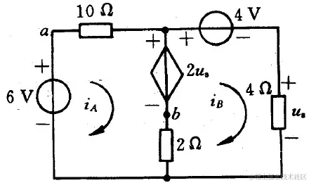 题6:使用网孔电流法求下方电路中的电压 uab。