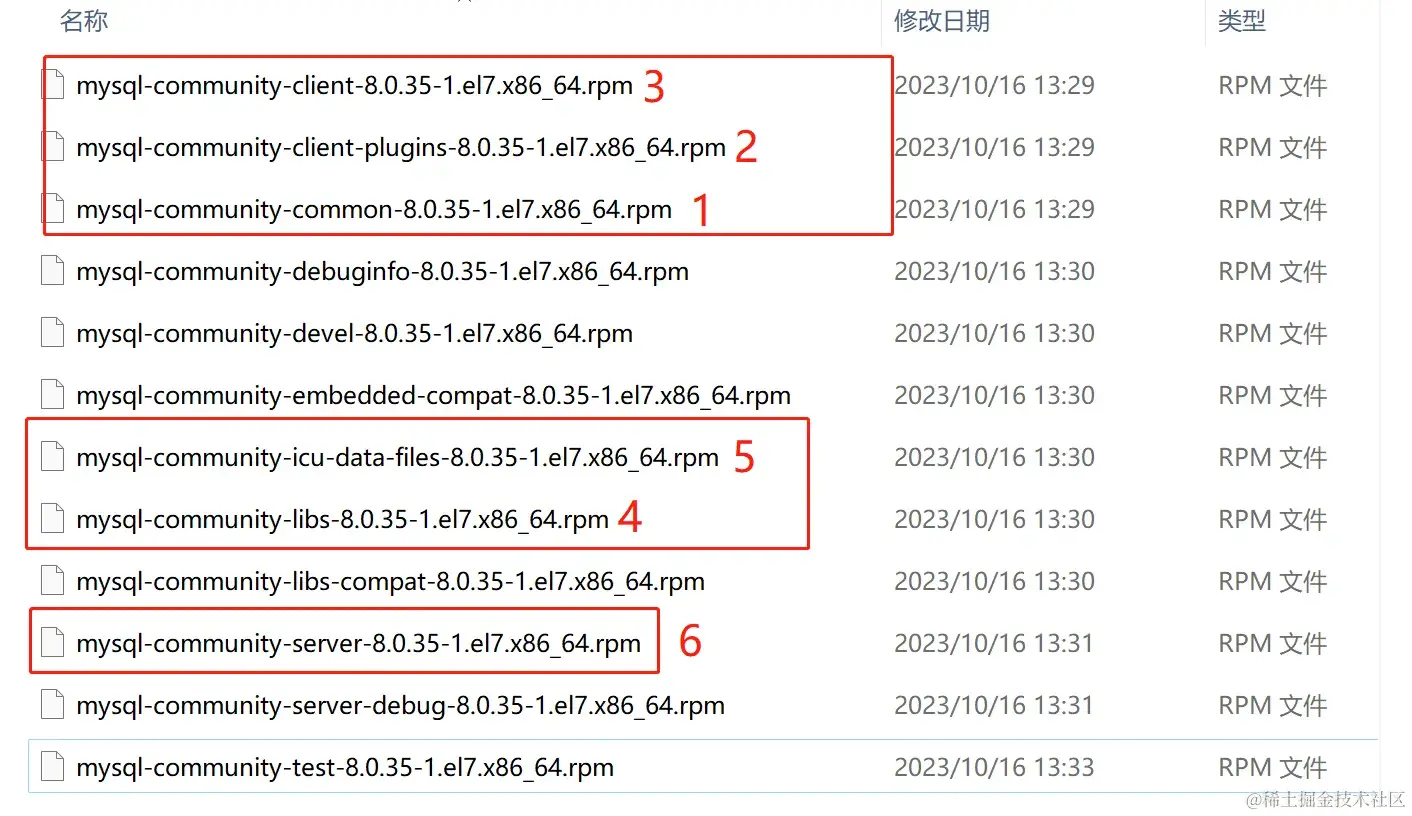 rpm -ivh mysql-community-common-8.0.35-1.el7.x86_64.rpm