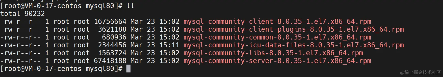 下载结束后,会得到一个mysql-8.0.35-1.el7.x86_64.rpm-bundle.tar压缩包