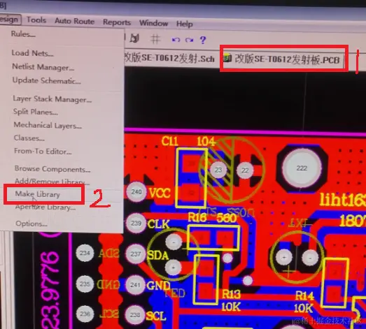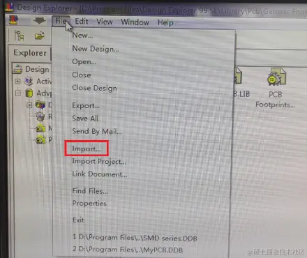 PCB库的修改稍烦,大家必须知道DDB文件里具体PCB库的文件名才行,如Adcpcb.DDB的库文件名为Footprint.lib。不知道库文件名的打开.DDB文件就知道了。把自己的两个库添加到Adcpcb.DDB,如下操作。