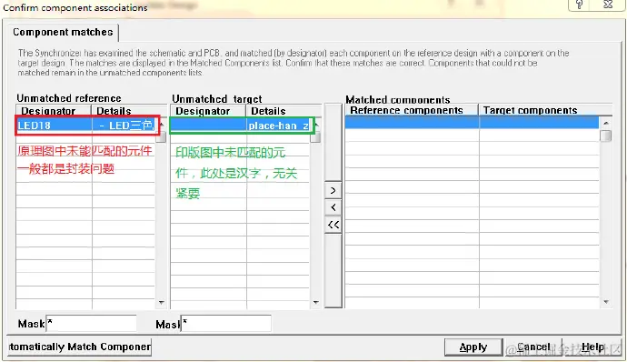 有时从原理图生成到PCB,PCB中找不到原理图中相应的元件。这时可以在PCB图中人为的加入某个元件(此元件已经添加在自行生成的PCB库中),原理图中的标号要与PCB图中要一样,否则生成的网络无飞线;