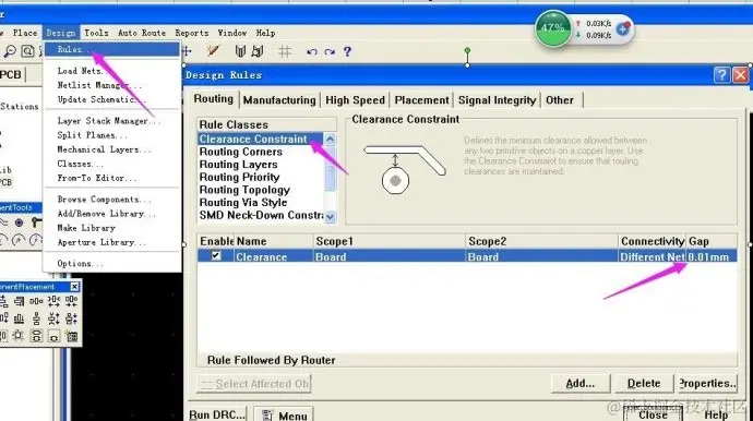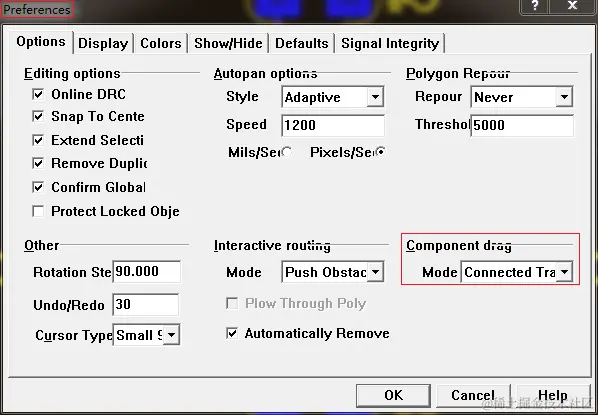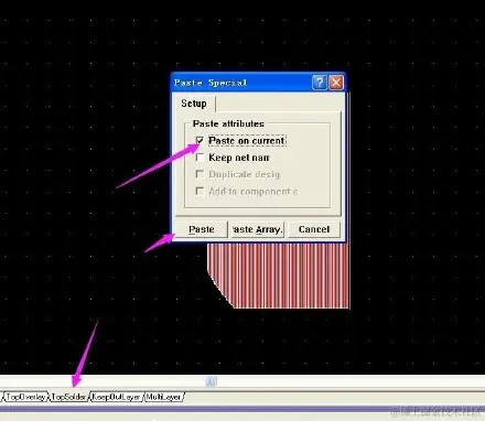 4)使用队列粘贴 5)Docunment Options中去掉DRC Errors规则错误和Connettion预拉线