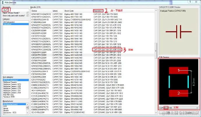 比如现在要确定一个22uF/16V电容的贴片封装大小