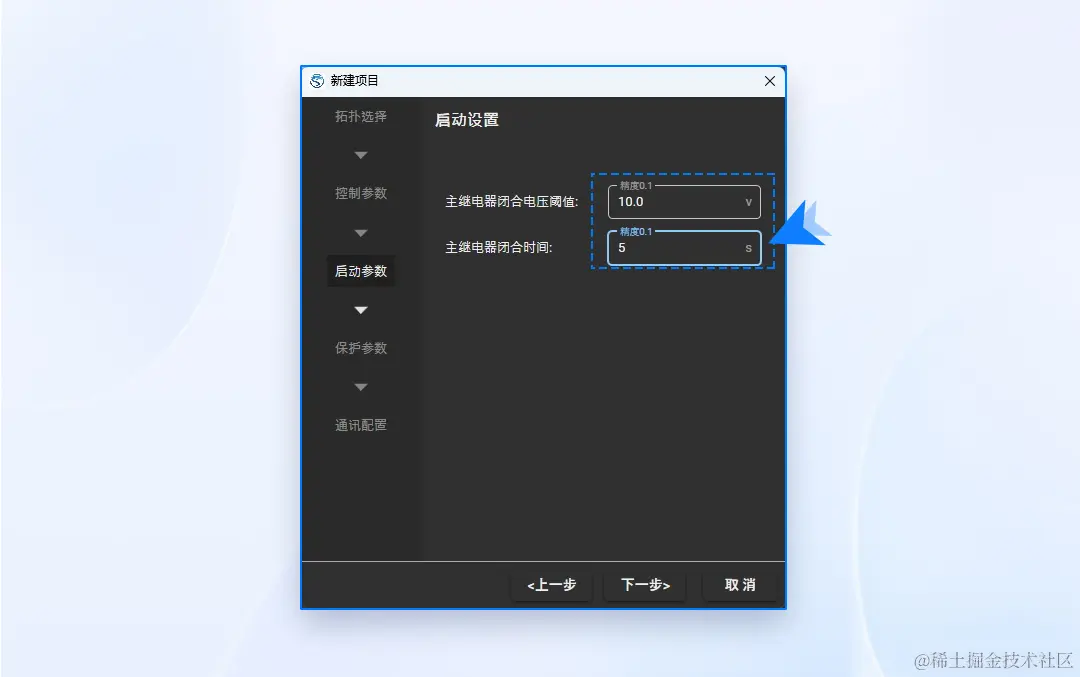 设定主继电器闭合电压阈值以及主继电器闭合时间,当检测电压大于“主继电器闭合电压阈值”时,经过 "主继电器闭合时间" 继电器自动闭合,参数可参考下图进行设置。
